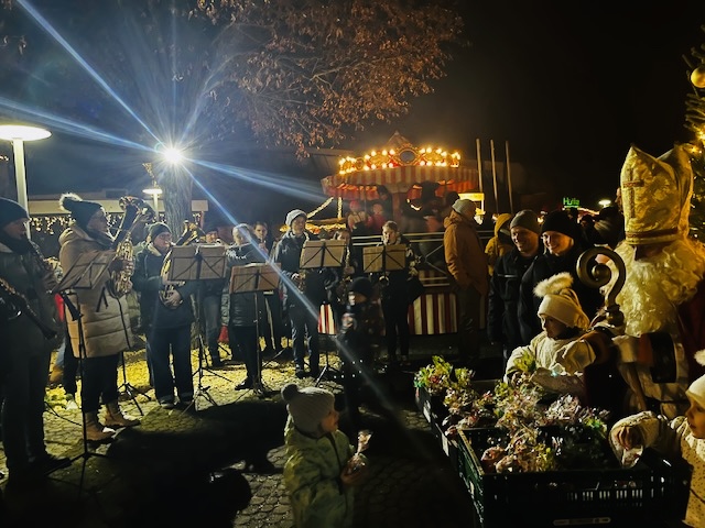 Mit unseren weihnachtlichen Klängen durften wir auch in diesem Jahr wieder die festlich-fröhliche Stimmung unter dem Christbaum verbreiten und den Besuch des Nikolaus und seiner Begleitung untermalen. Schön war’s!
