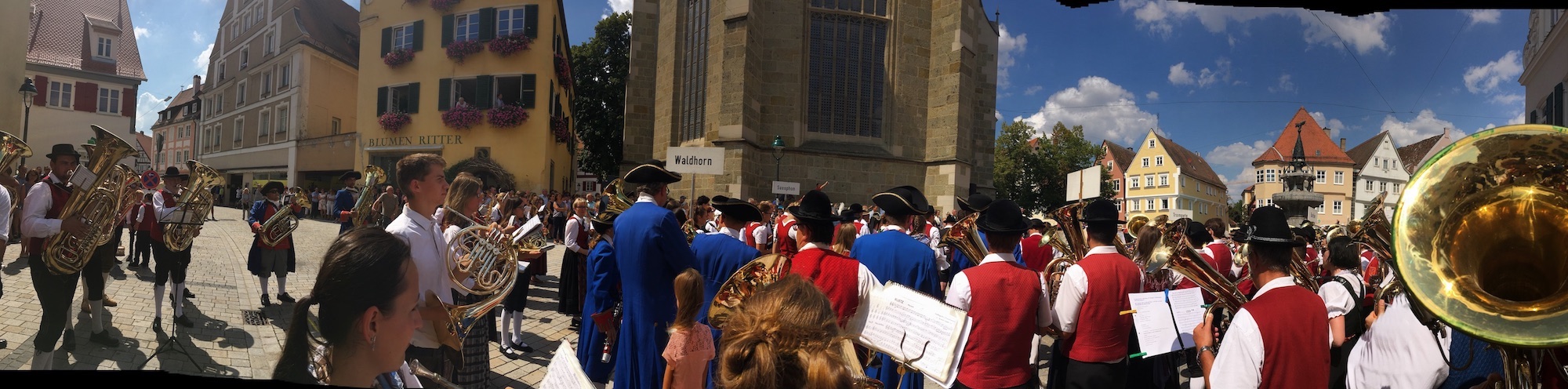 Schwabentag in Nördlingen – 19. August 19. August 201831. Oktober 2022 Heute waren wir in Nördlingen beim Schwabentag mir Sternmarsch und Massenchor. Es ist immer wieder ein ganz besonderes Erlebnis mit vielen anderen Musikern gemeinsam zu spielen. Dass Musik verbindet , das wird hier besonders deutlich.